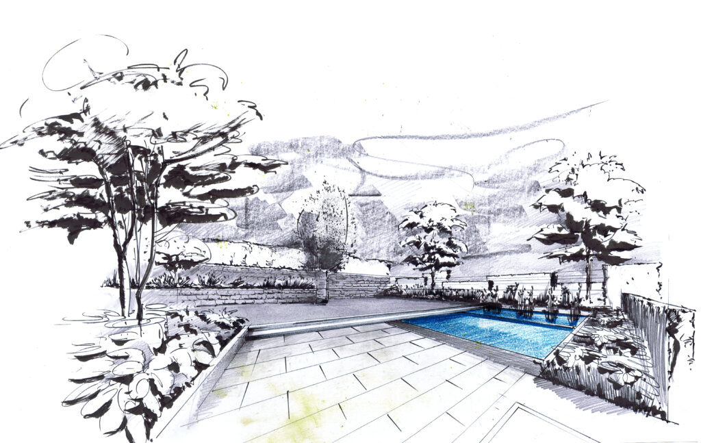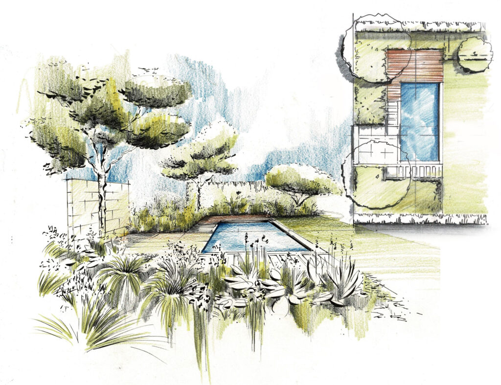 Denn erst die fertige Gartenzeichnung ist eine stimmige Komposition aus den baulichen Wünschen des Kunden, dem fachlichen Gespür des Planers wie den ortlichen Gegebenheiten.